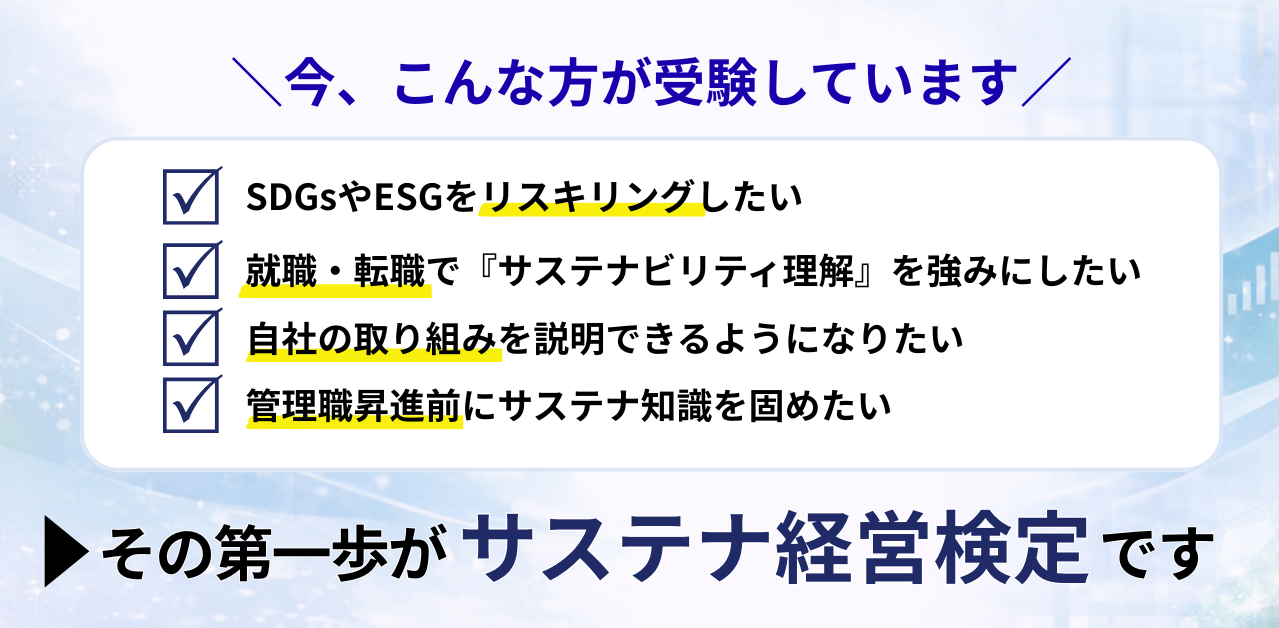 | エ | 日本企業がサステナ経営の実現に向けて動きだし、それを投資家や株主が評価する「サステナブル投資」が日本でも急速に拡大し始めた。 |